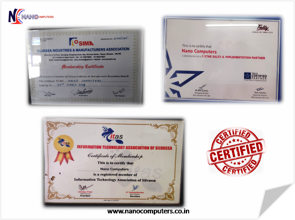 Nano Computers is only Tally certificate Partner 3 Star sales & Implementation in Dadra & Nagar Haveli and Daman and Diu